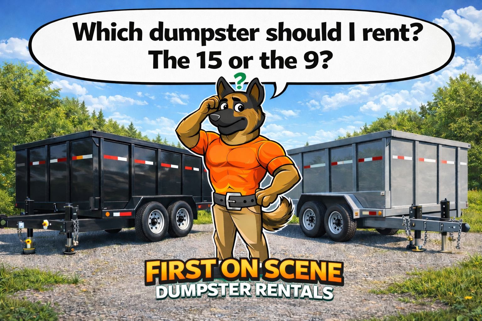 Not sure whether a 9-yard or 15-yard dumpster is the right fit for your project? Our team at First On Scene Hauling & Junk Removal is happy to help you decide based on the type and amount of debris you’re working with. Give us a call at